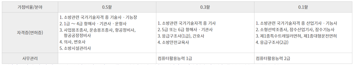 시험관리 자격증 등 소지자 가점비율