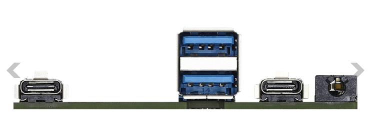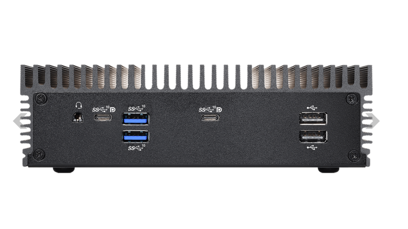 The ASRock iBOX-V2000 (AMD Ryzen Embedded) series can be configured with dual-channel DDR4-3200 MHz memory with capacity support of up to 64 GB (32 GB per SO-DIMM). Expansion slots on the SFF PC include 2 M.2 slots, one of which is for wireless connectivity (PCIe x1) and the other is for SSDs (M2280 PCIe x4). Storage also includes a single SATA 3.0 port. There are two Ethernet ports on the iBOX, one has a 2.5G switch while the other has a 1G switch. Audio is powered by a Realtek ALC233 controller. I/O on the MiniPC includes 2 USB 3.2 Gen 2 (Type-A), 2 USB 3.2 Gen 2 (Type-C), 1 audio jack, and 1 COM RS-232 port on the front.