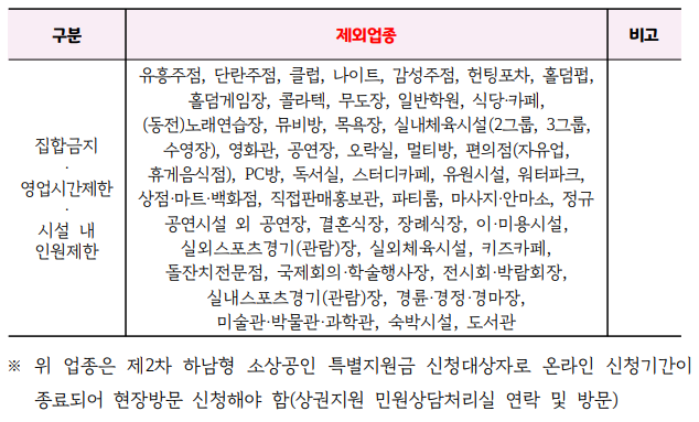 - 코로나19 방역조치 행정명령 업종(제2차 하남형 소상공인 특별지원금 대상자 제외)
